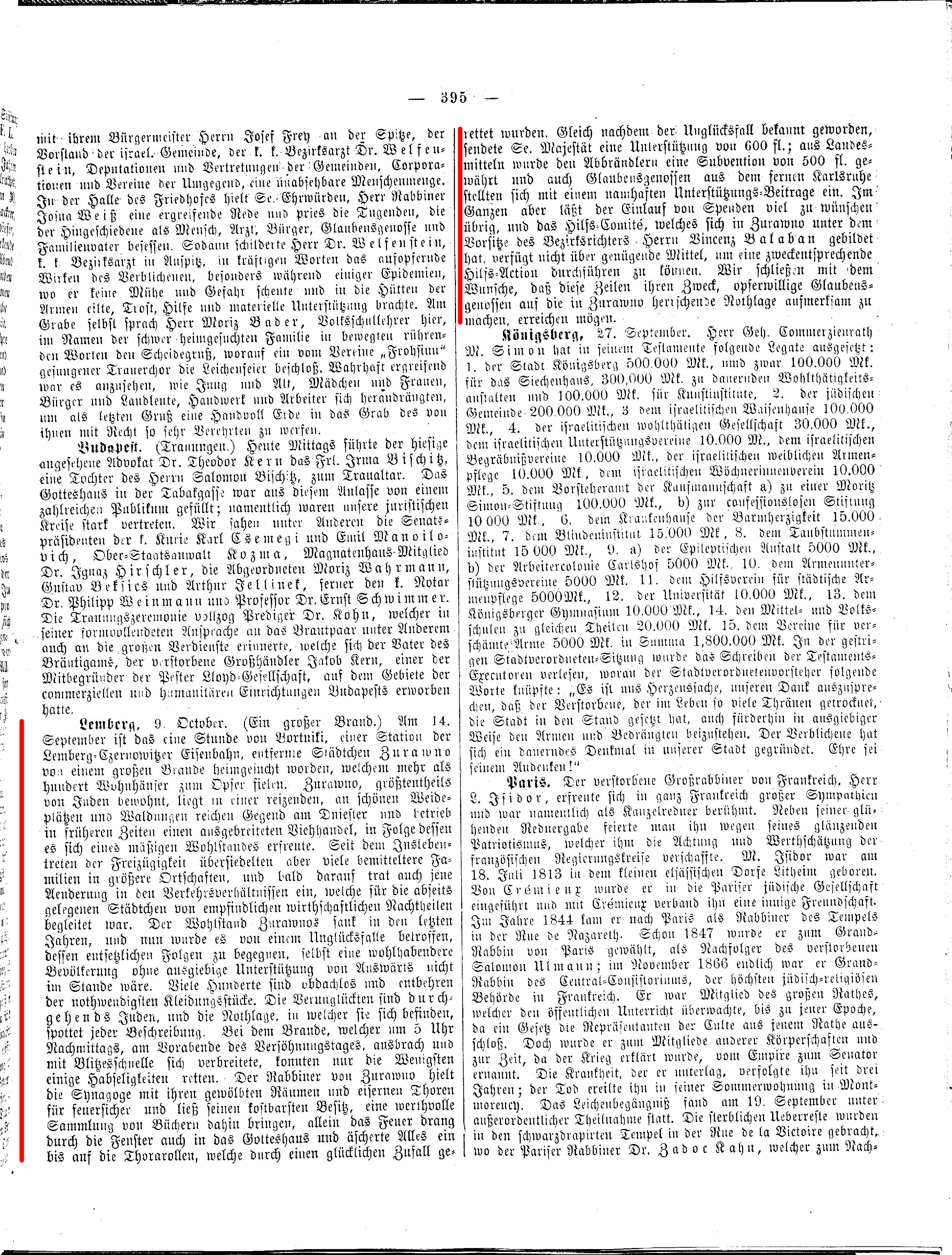 In den damaligen Medien schien Zurawno fast ausschließlich im Zusammenhang mit dem Ochsenhandel auf, jüdische Ochsenhändler lieferten galizisches Hornvieh überwiegend nach Olmütz und selbst in die ferne Residenzstadt Wien. Das Städtchen konnte dadurch ansehnlichen Wohlstand erlangen.