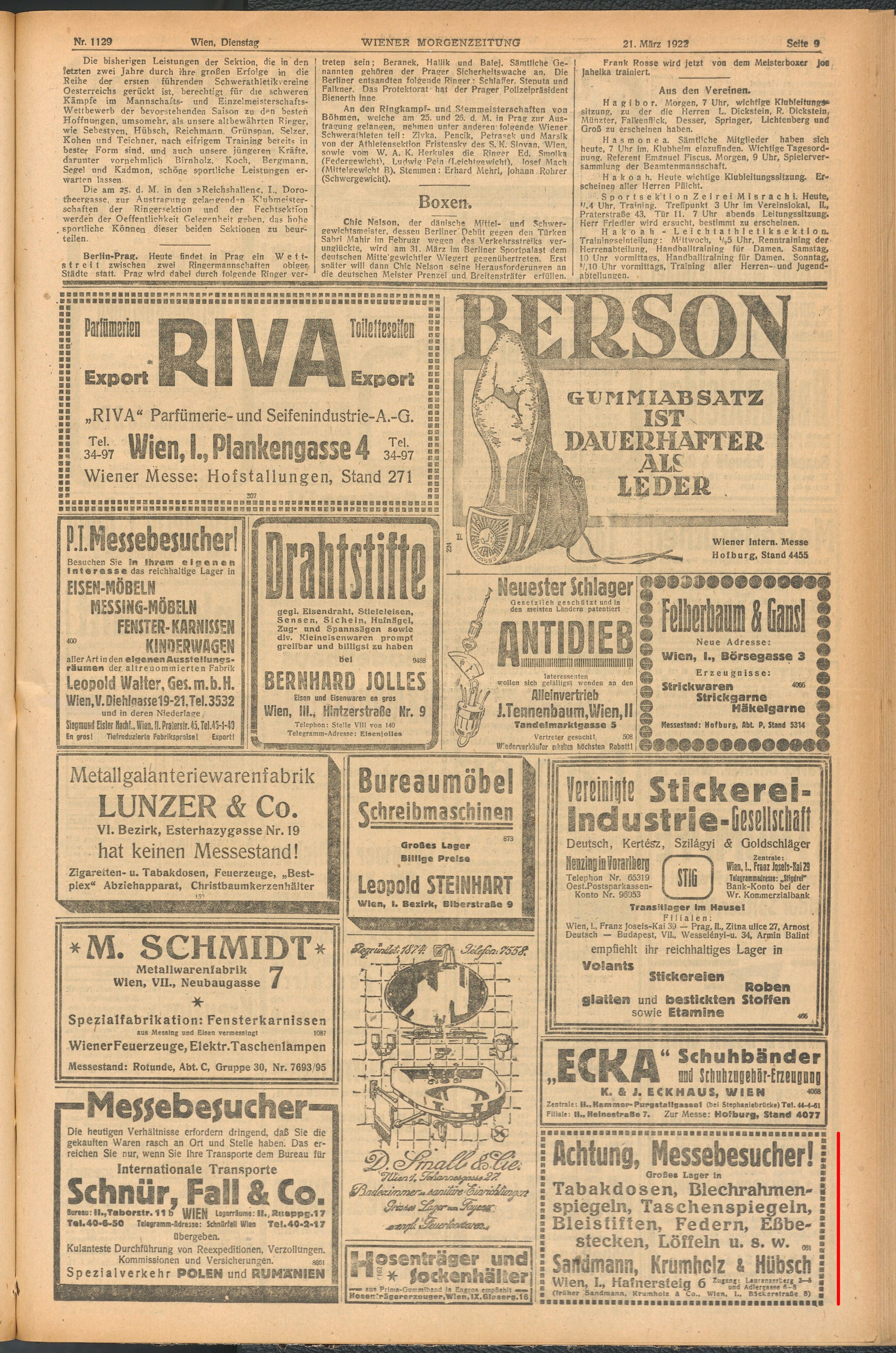Fani führte das Geschäft unter ihrem Namen offenbar weiter. Sie scheint in einem Branchenverzeichnis im Jahr 1934 nach wie vor auf.