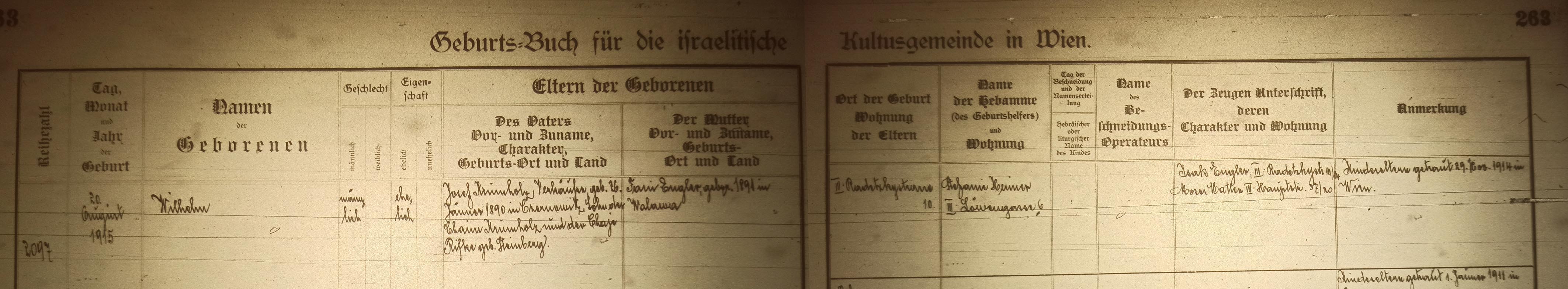 Sie bekamen in Wien die zwei Söhne Wilhelm (*20.08.1915) und Robert (*06.11.1920). Wilhelm wurde übrigens von der selben Hebamme (Stefanie Heimer (*1881/✡1929) aus der Löwengasse 6) entbunden wie Max Günsberg einige Jahre später. Fani ist ihrer Mutter Klara wie aus dem Gesicht geschnitten. Josef diente im ersten Weltkrieg von August 1915 bis zum Kriegsende im November 1918 in der K.u.K Armee.
