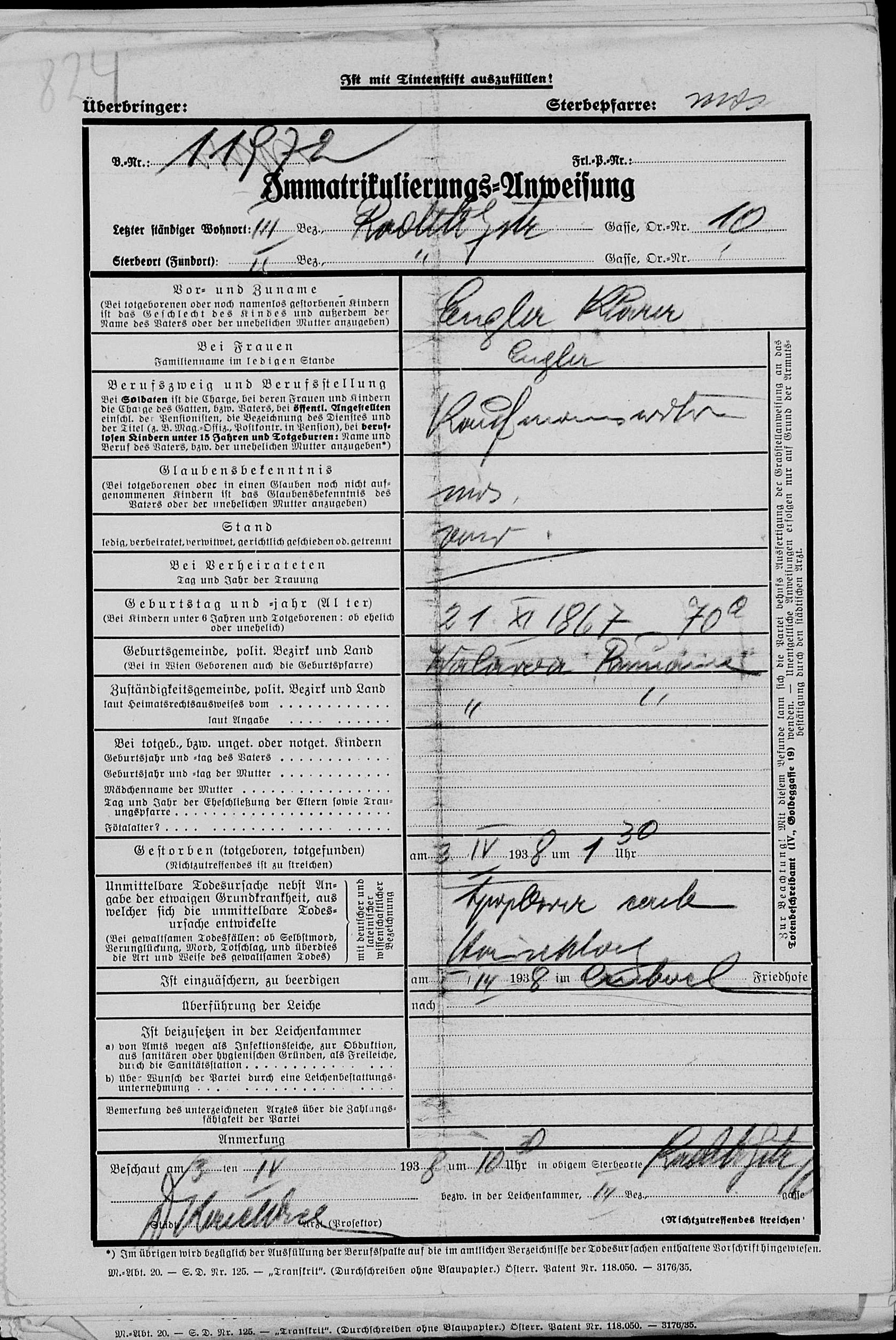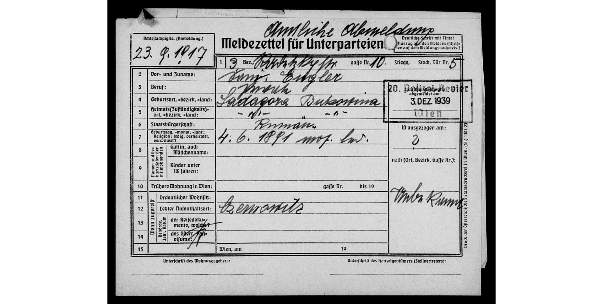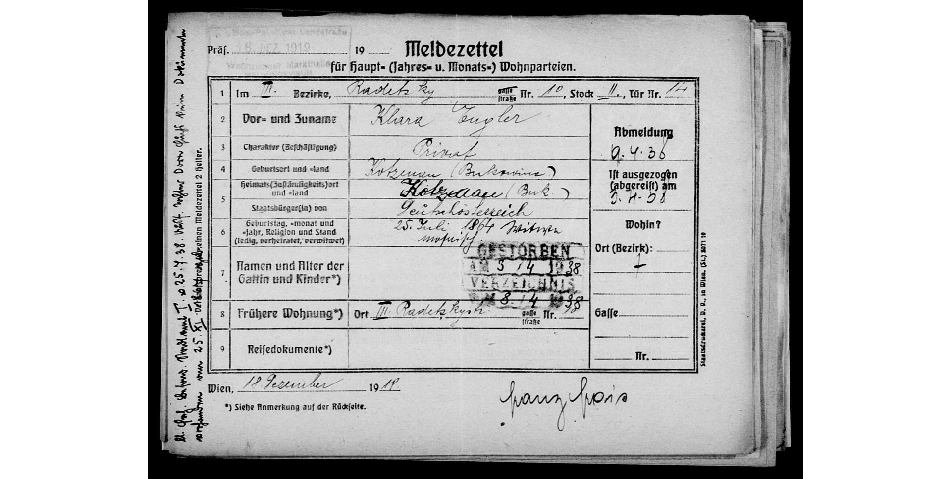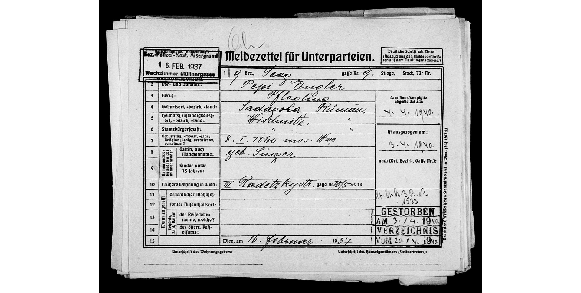Die Engler-Familien lebten in Wien im dritten Bezirk, in der Radetzkystraße 10. Max´ Großmutter Pessi Singer-Engler bewohnte mit ihren drei Kindern eine Wohnung im ersten Stock, Tür Nr.5. Ihre Schwägerin Klara Engler und deren Mann Isaak lebten mit einigen ihrer acht Kinder im zweiten Stock, Tür Nr.14.