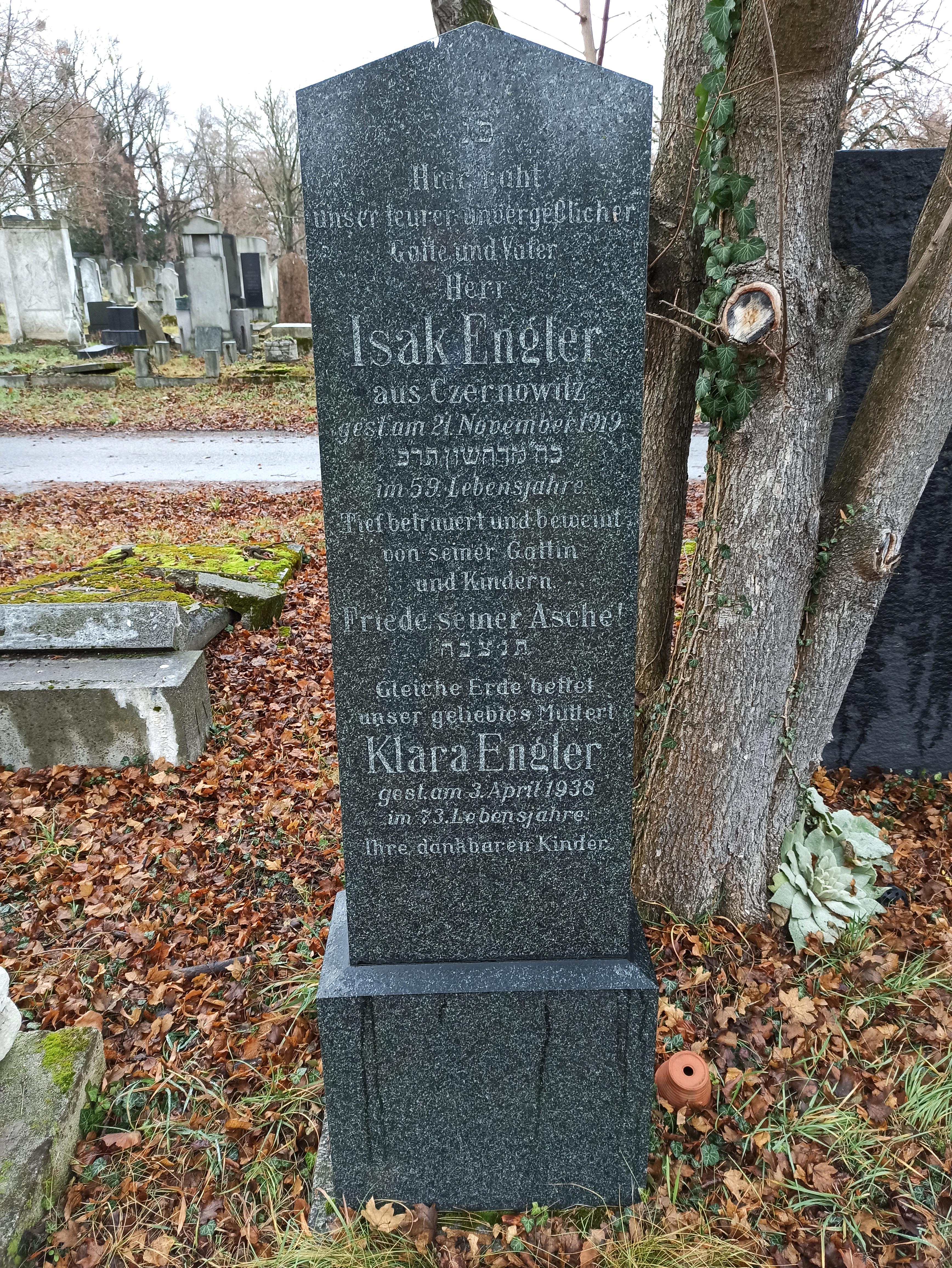 Isaak/Ytzhak Engler wurde am 25.04.1862 in Walawa im Gerichtsbezirk Kotzmann im damals (bis 1918) österreichischen Kronland Bukowina geboren. Der Ort heisst heutzutage Valyava und liegt in der Ukraine rund 20km nördlich von Czernowitz. Seine spätere Frau Klara Chaje hieß mit ledigem Namen ebenfalls Engler und wurde in Walawa am 21.11.1867, wahrscheinlich als Tochter von Chaim und Scheindel Engler (geborene Bildner), geboren. Klara hatte laut den Angaben von Kurt Seliger eine Schwester namens Rifke/Regina, die mit Mendel Max Löbl in Czernowitz eine Familie gründete und später auch nach Wien kam. Weiters hatte Klara Engler einen Bruder namens Moses Engler, der Pessi Singer heiratete. Deren Tochter Etie Engler-Singer heiratete schließlich Setyk Günsberg, wodurch sich die Verbindung der Familien Engler und Günsberg erschließt.