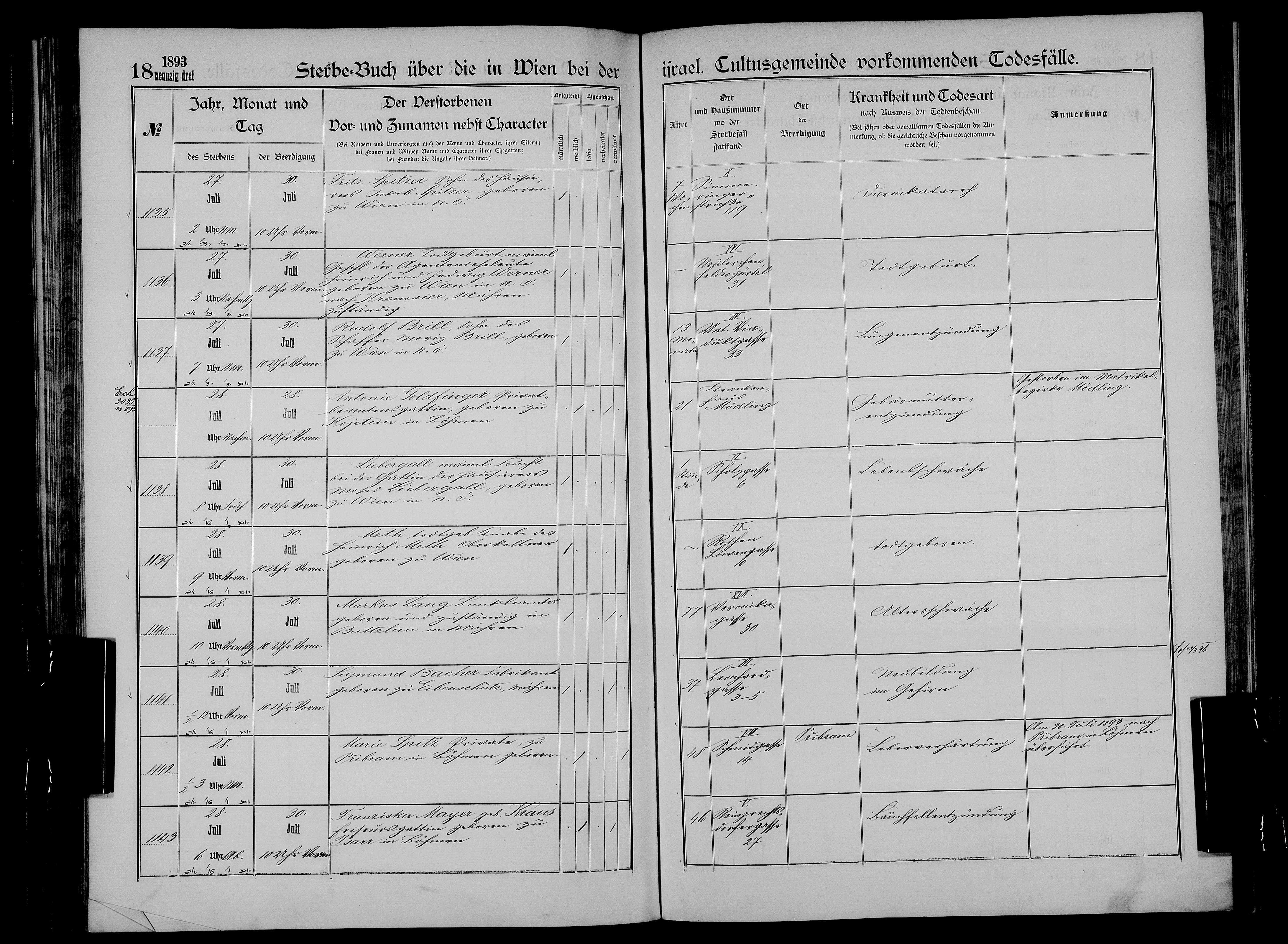 Sabines Mann Moses Brill starb in Wien am 05.08.1908 und wurde am 07.08.1908 in Wien begraben.