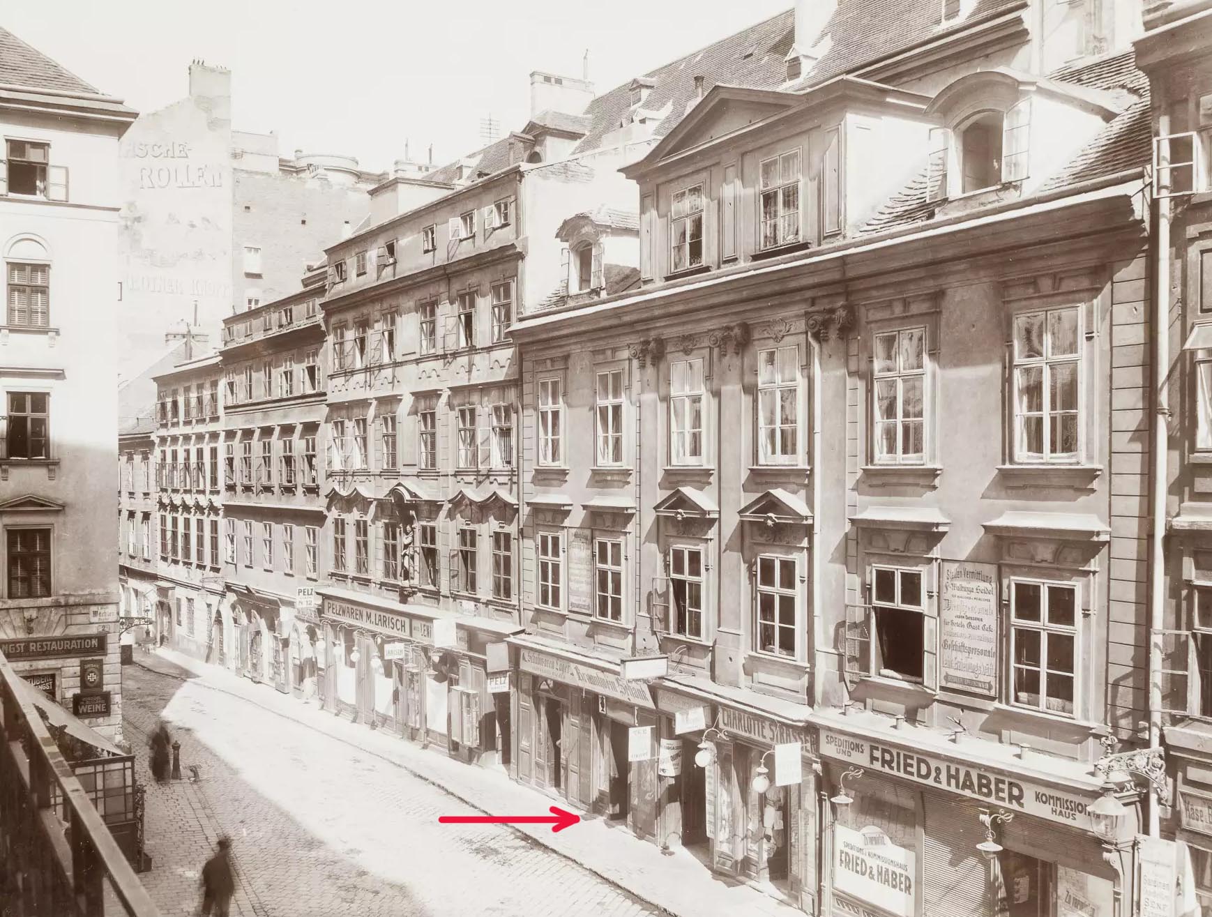 Der Branntwein-Ausschank von Netti Brill in 1010 Wien, Tiefer Graben 10. [Klick] für Bild in voller Auflösung