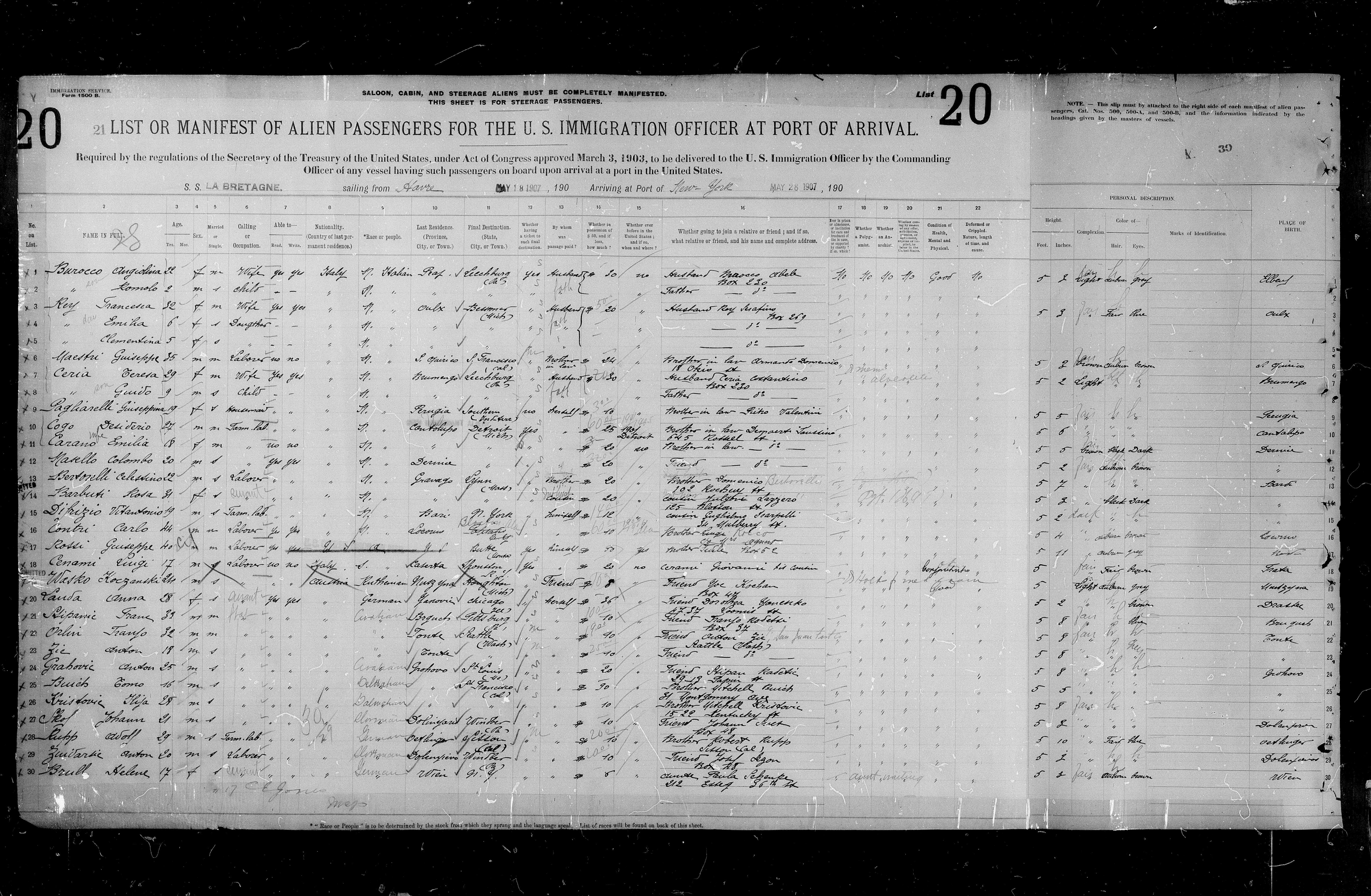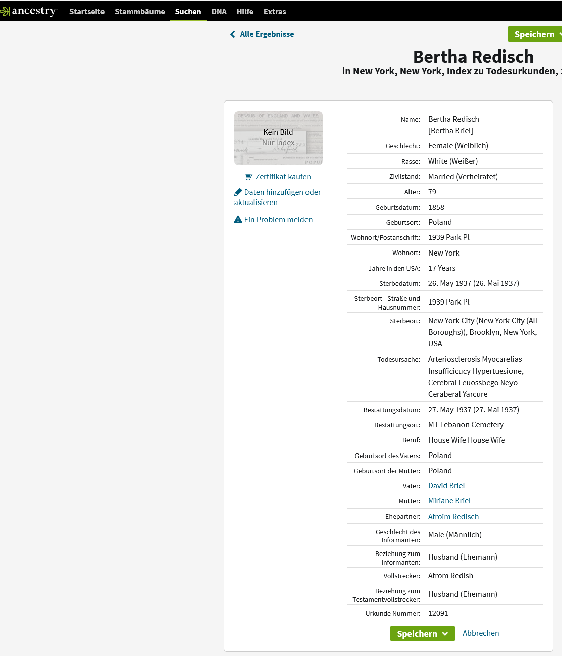 David Brill füllte am 10.06.1938 einen Auswanderungsfragebogen aus und gab dort als in den USA lebenden Verwandten außer seinem Onkel Max Schenke noch eine Cousine namens Mina/Diena Katz (*16.11.1883) an (eine Tochter seiner Tante Ruchel Katz, geborene Brill) und weiters einen Cousin namens David Redisch (*17.05.1882), der aus Zurawno zunächst nach Wien und 1907 weiter nach Amerika ausgewandert und der Sohn von Davids Tante Breine Redisch (geborene Brill) war.