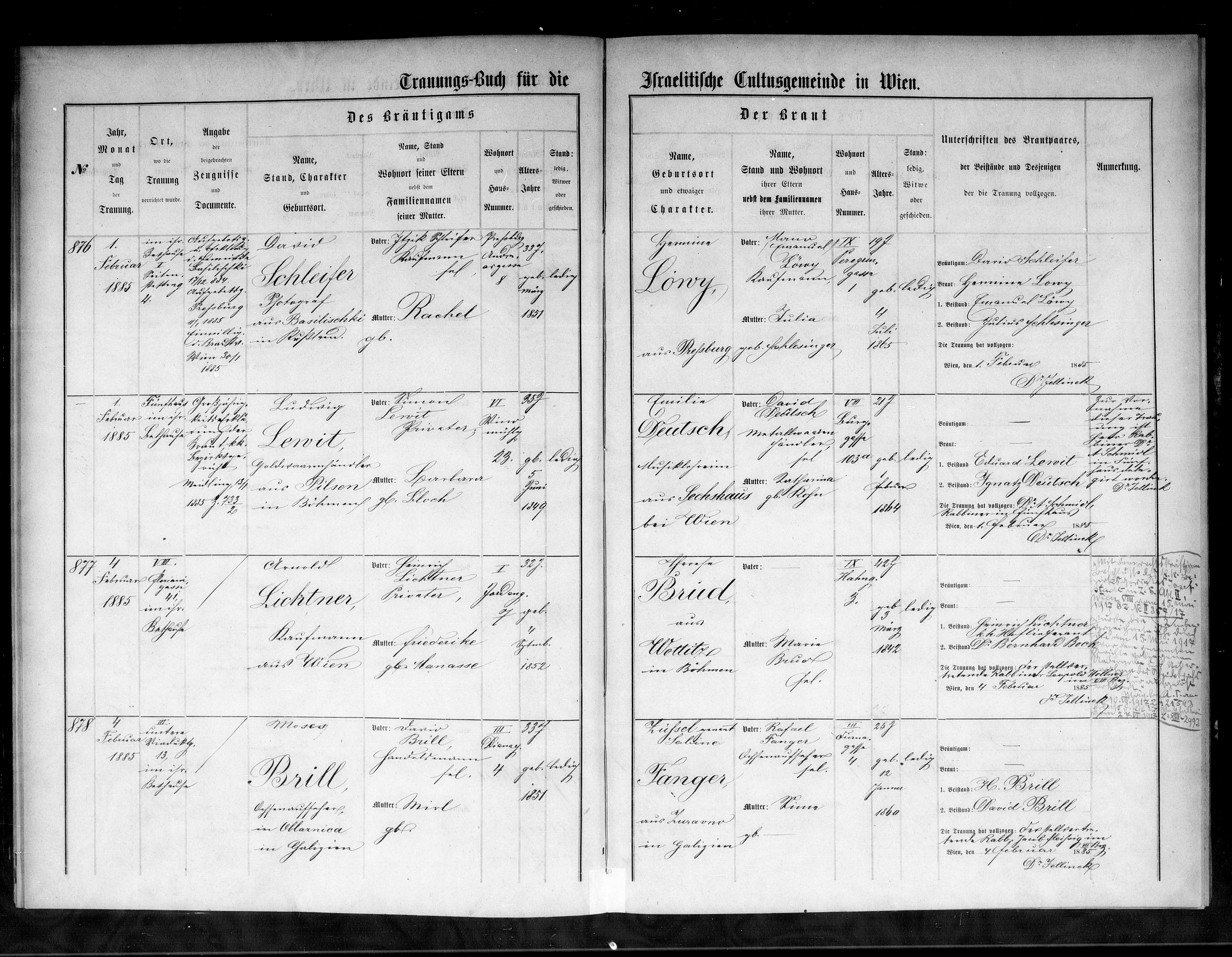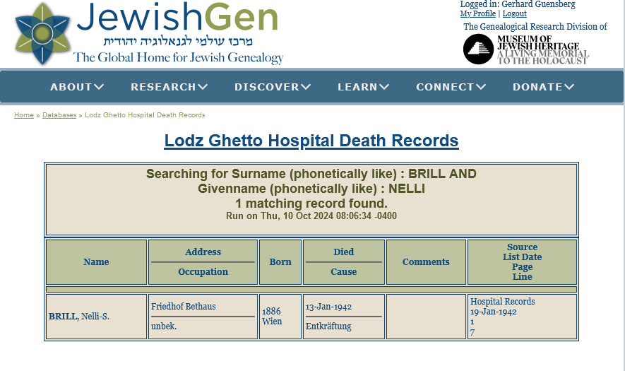 - Leonie/Helene Brill wurde am 21.04.1890 in Wien geboren. Im Jahr 1907 durfte sie ihre Tante Paula Schenke in New York besuchen, sie kam am 27.05.1907 in New York an. Sie trat am 20.03.1911 aus der israelitischen Glaubensgemeinschaft aus.