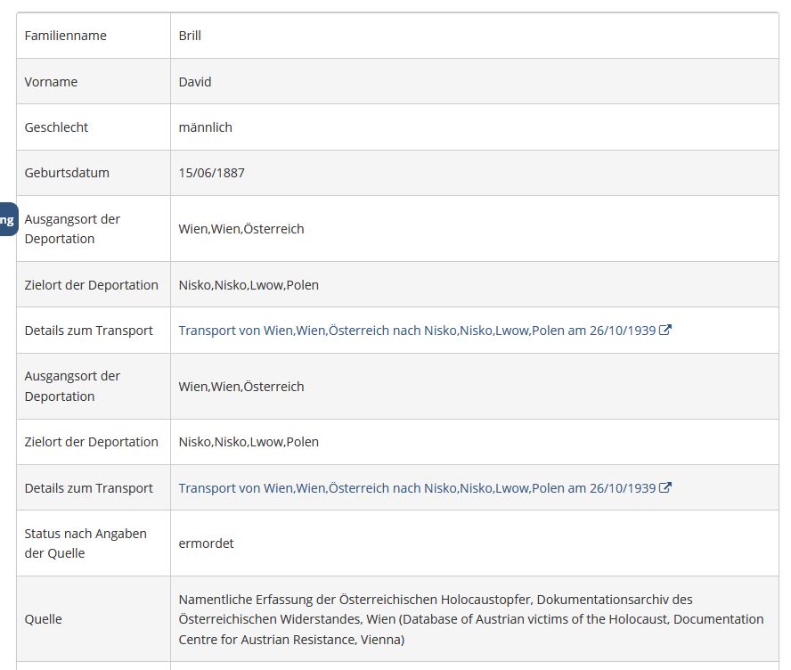 Nach Angaben des DÖW kam David Brill dabei ums Leben.
