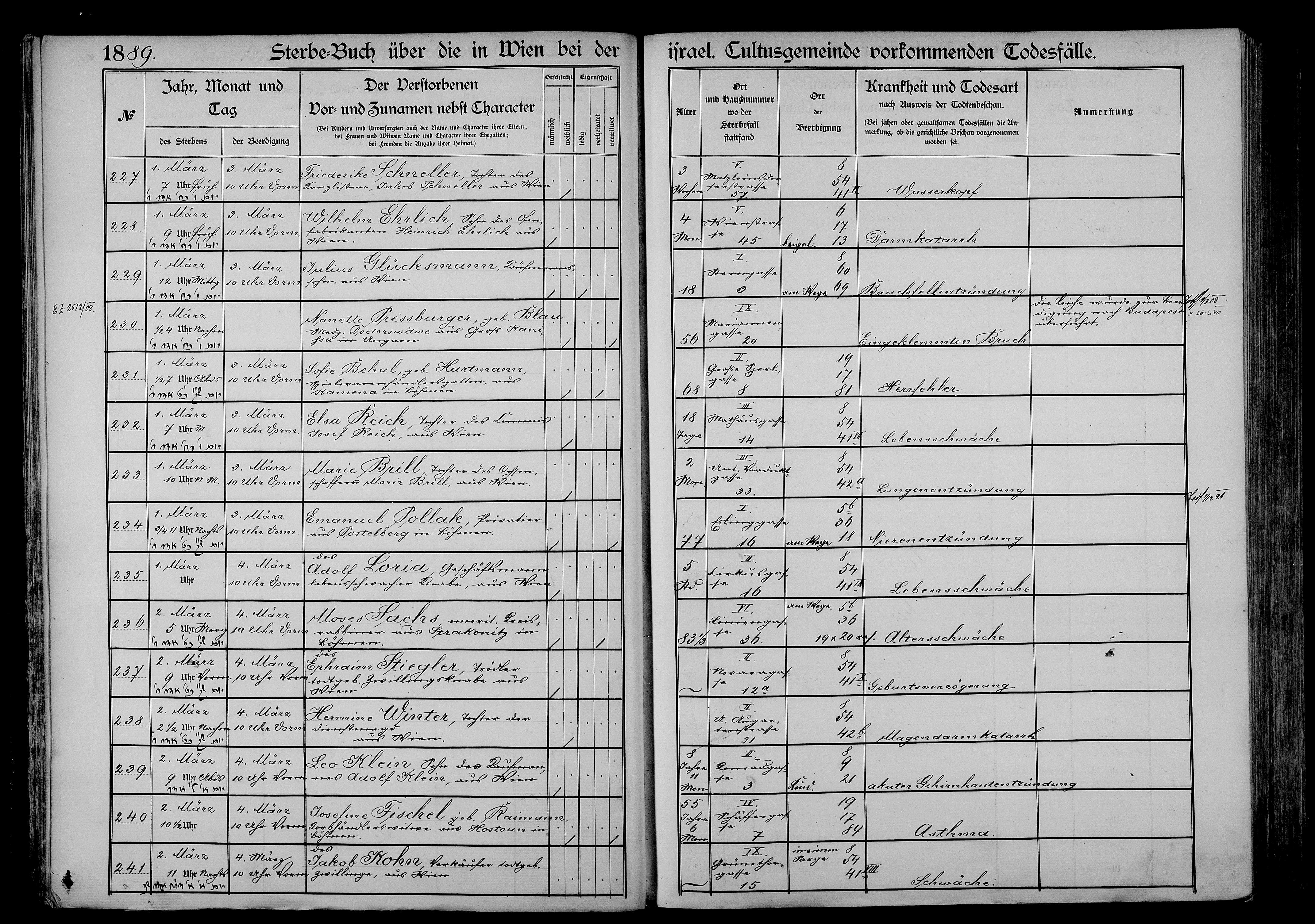 Es blieben also nur die Kinder von Sabine Brill (seine Nichten/Neffen) sowie Reisie Günsberg (seine Schwester) als potentielle Erben übrig. Als einzige in Wien lebende Verwandte waren bei der Todfallsaufnahme von Abraham Fanger seine Nichte Netti sowie sein Neffe David Brill (die Kinder seiner 1911 verstorbenen Schwester Sabine Brill, geb. Fanger) anwesend. Seltsamerweise wurde jedoch auch seine Nichte Marie Brill angeführt, die jedoch definitiv schon 1889 als Kleinkind verstorben war. Sogar die Unterschrift einer angeblichen Marie Brill findet sich auf diesem Dokument. Warum jemand unter falschem Namen firmierte kann nur spekuliert werden. Möglicherweise sollte ein größeres Erbteil erschlichen werden. Abrahams 1911 verstorbene Schwester Sabine Brill, die Mutter der angeblichen Marie Brill, war bei früheren Gelegenheiten ja ähnlich "kreativ" gewesen.