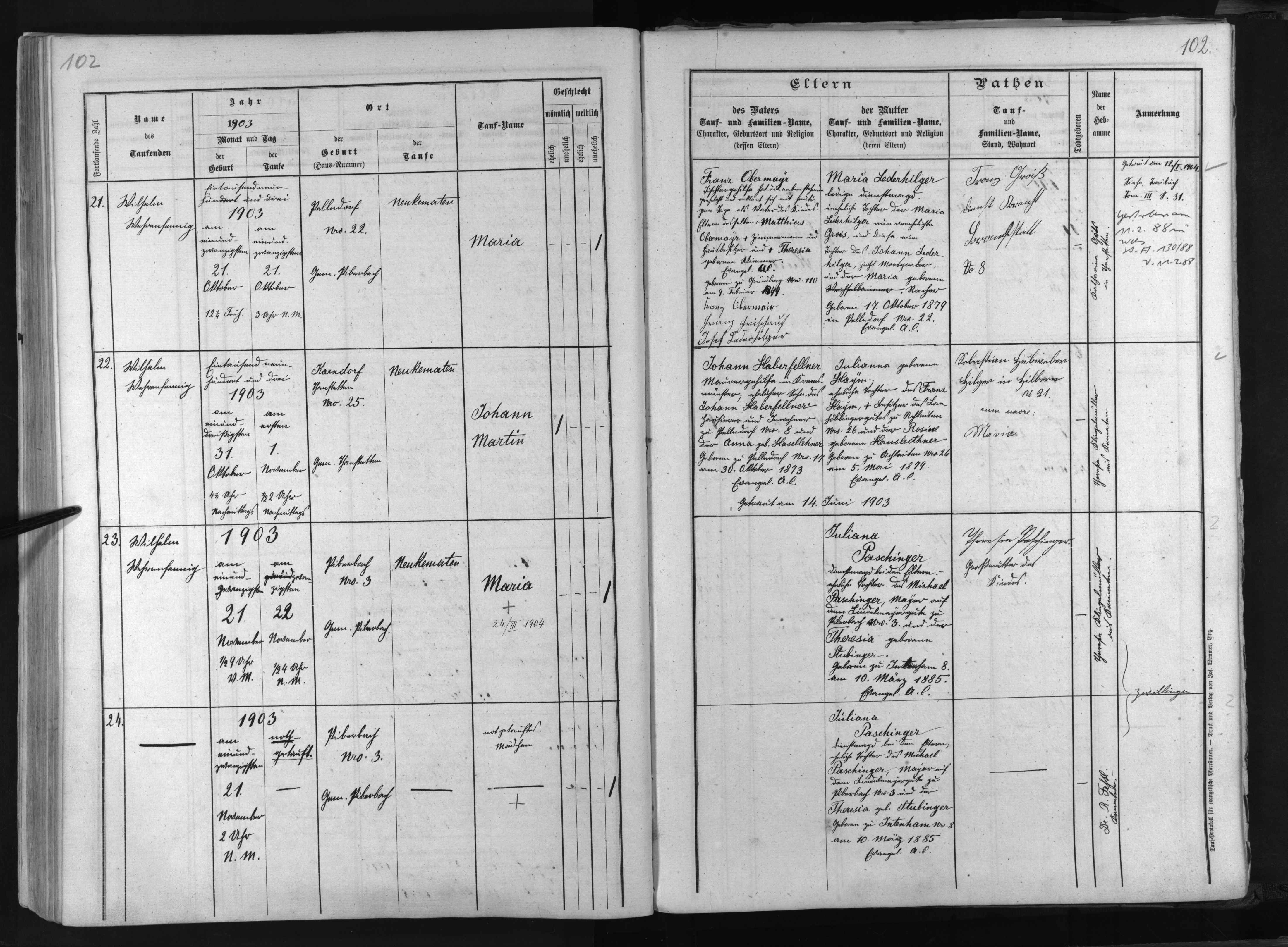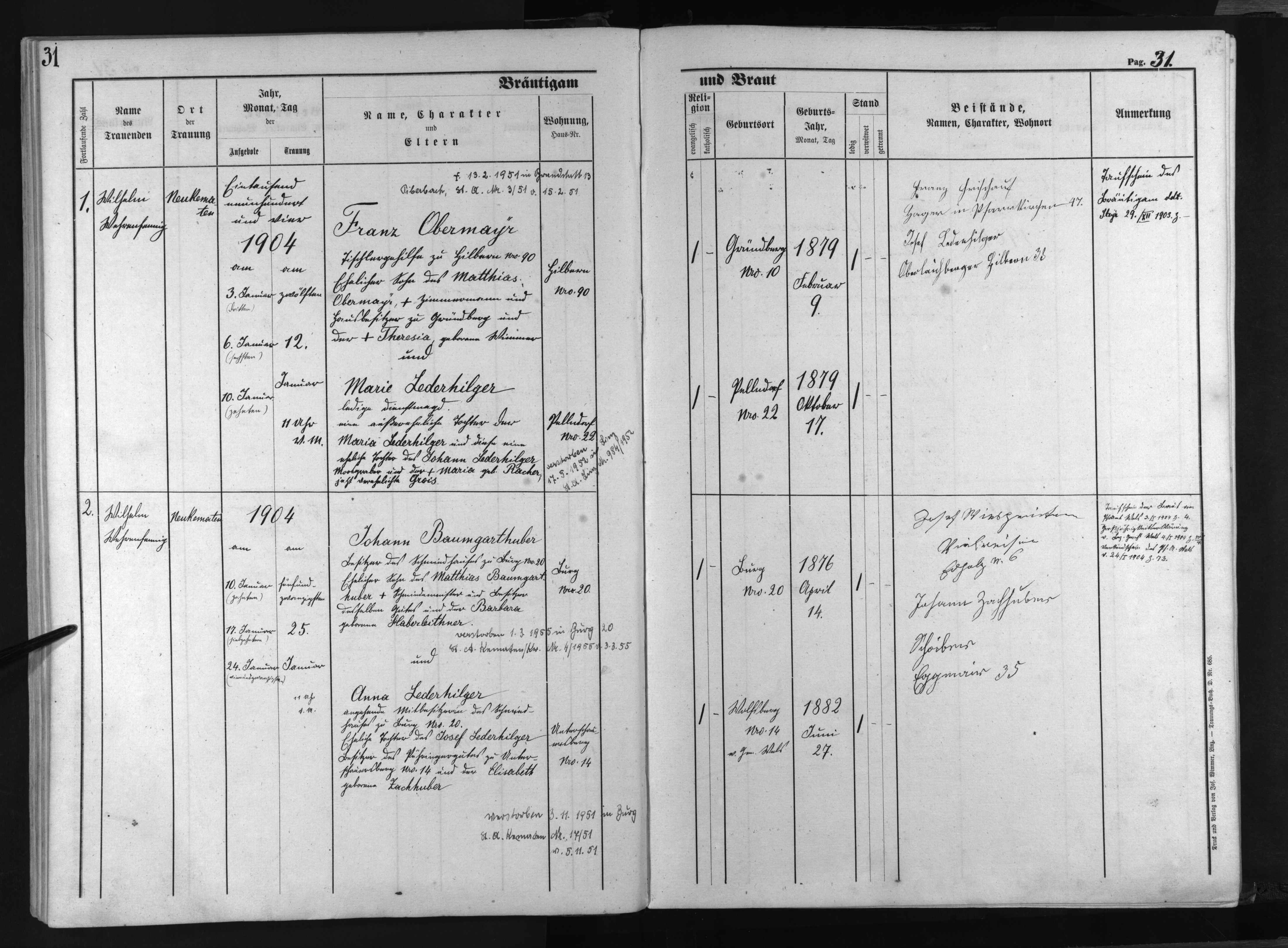 Am 21.Oktober 1903 wurde ihm, der zu diesem Zeitpunkt noch Tischlergehilfe war, und seiner noch nicht angetrauten Dienstmagd Maria Lederhilger ein Mädchen namens Maria/Mizzi Lederhilger (nach dem Namen ihrer Mutter) geboren. Erst danach, am 12.01.1904, konnten die beiden heiraten. Dass Erstgeborene zu dieser Zeit sehr oft unehelich geboren wurden, war der meist präkeren finanziellen Situation junger Paare geschuldet, die eine Hochzeit und einen gemeinsamen Haushalt vorerst nicht zuließ.